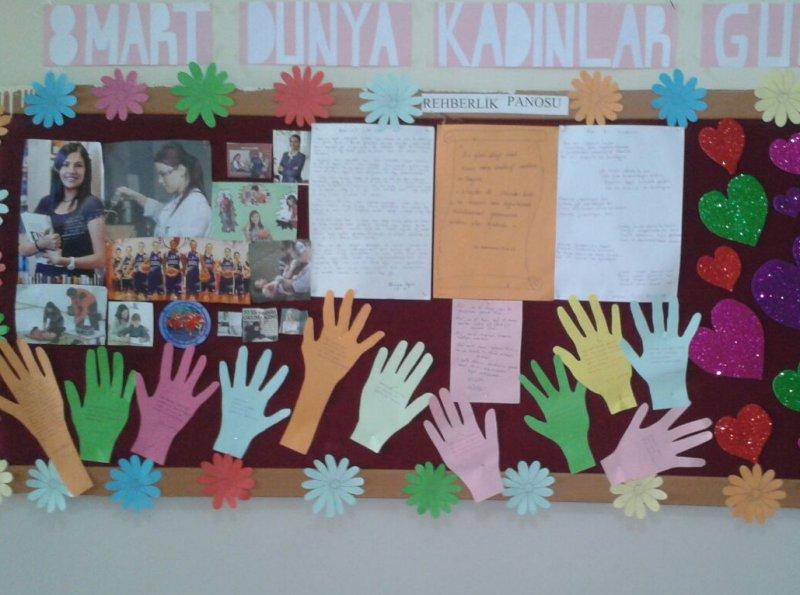 Okulumuz öğrencileri arasında ´´8 Mart Dünya Kadınlar Günü´´ ile ilgili kompozisyon,şiir ve güzel sözler yarışması düzenlendi. Birinci gelen çalışmalar Rehberlik Panosunda sergilendi. Emeği geçen öğretmen ve öğrencilerimize teşekkür ediyoruz..